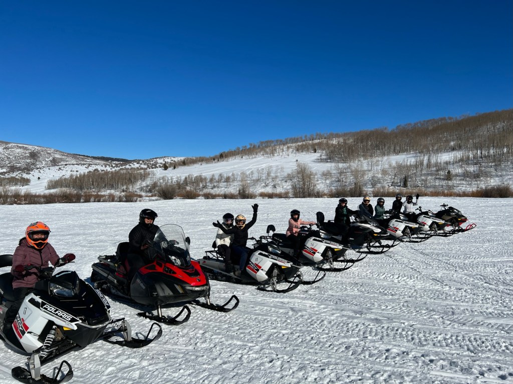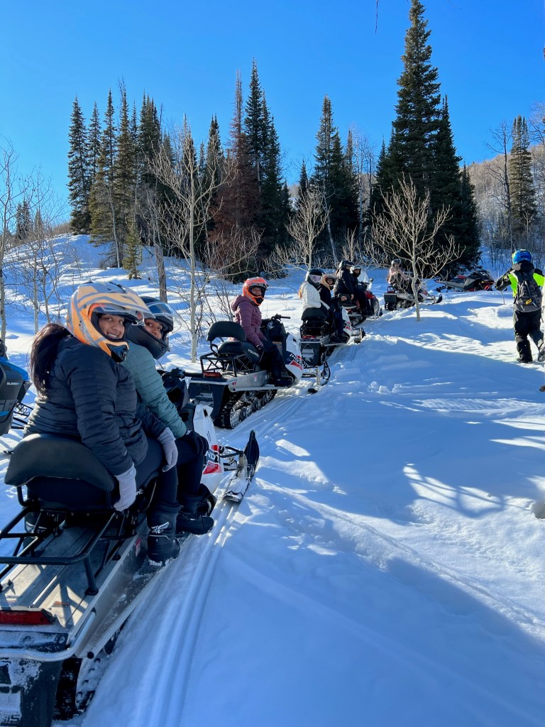 Snow mobiling by far is one of the most memorable experiences for all of us. IT IS SO MUCH FUN!!! Well, for most of us… Not so for my friends whom ran into trees or fell. No bones were broken, we just got a few bruises. ๐ But really, snow mobiling is so much fun!! We adventured with Woodland Snowmobile Adventures and had a great time! Snow mobiling is usually closer to Park City (ours was in Kamas, Utah), so it is a longer drive to get there but the drive through the mountains is so beautiful. It looks like a painting the whole way. We went on a three hour tour and made so many memories just from this part of the trip. And of course, the dogs and hot chocolate were a bonus win!